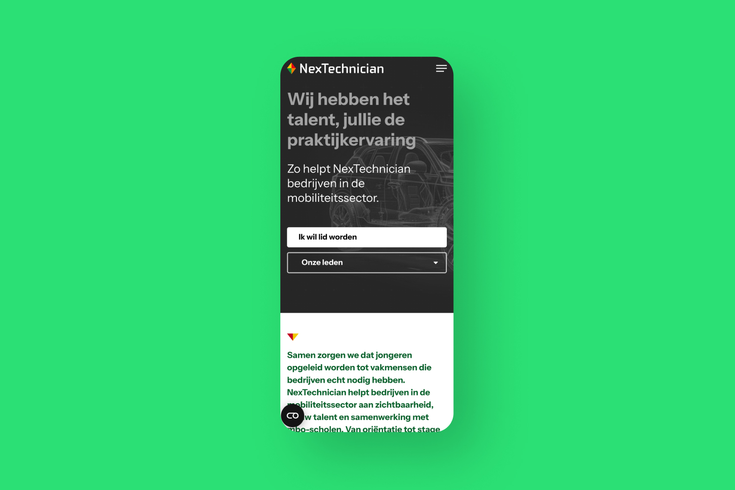 NexTechnician verbindt techniekstudenten, mbo-opleiders en bedrijven in de mobiliteitssector met elkaar. Als verbinder zorgt de organisatie ervoor dat het techniekonderwijs aansluit op de praktijk, dat jongeren hun weg vinden naar een toekomst in de mobiliteit, en dat bedrijven betrokken zijn bij het talent van morgen. Maar online liep de organisatie vast. De website bestond uit meerdere losse domeinen, de structuur was onlogisch en de boodschap versnippert. Hoog tijd om het digitale fundament opnieuw te leggen.